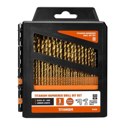 Juego de brocas numeradas de acero de alta velocidad de titanio, 60 piezas